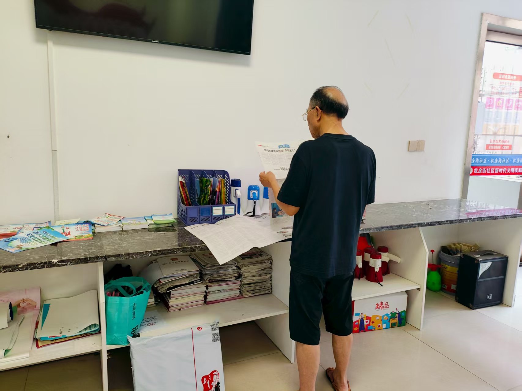 走进服务站,凉意扑面而来。空调持续运转,室内温度适宜,与室外炎热形成鲜明对比。站内不仅提供充足的免费饮用水,方便大家随时补充水分,还摆放了多种报刊杂志,供前来歇脚的居民阅读浏览,缓解疲劳。许多路过送完货的快递小哥、清扫街道的环卫工人,以及买菜回家的老人,都会在这里歇一歇、喝口水、看看报,短暂休息后再重新出发。