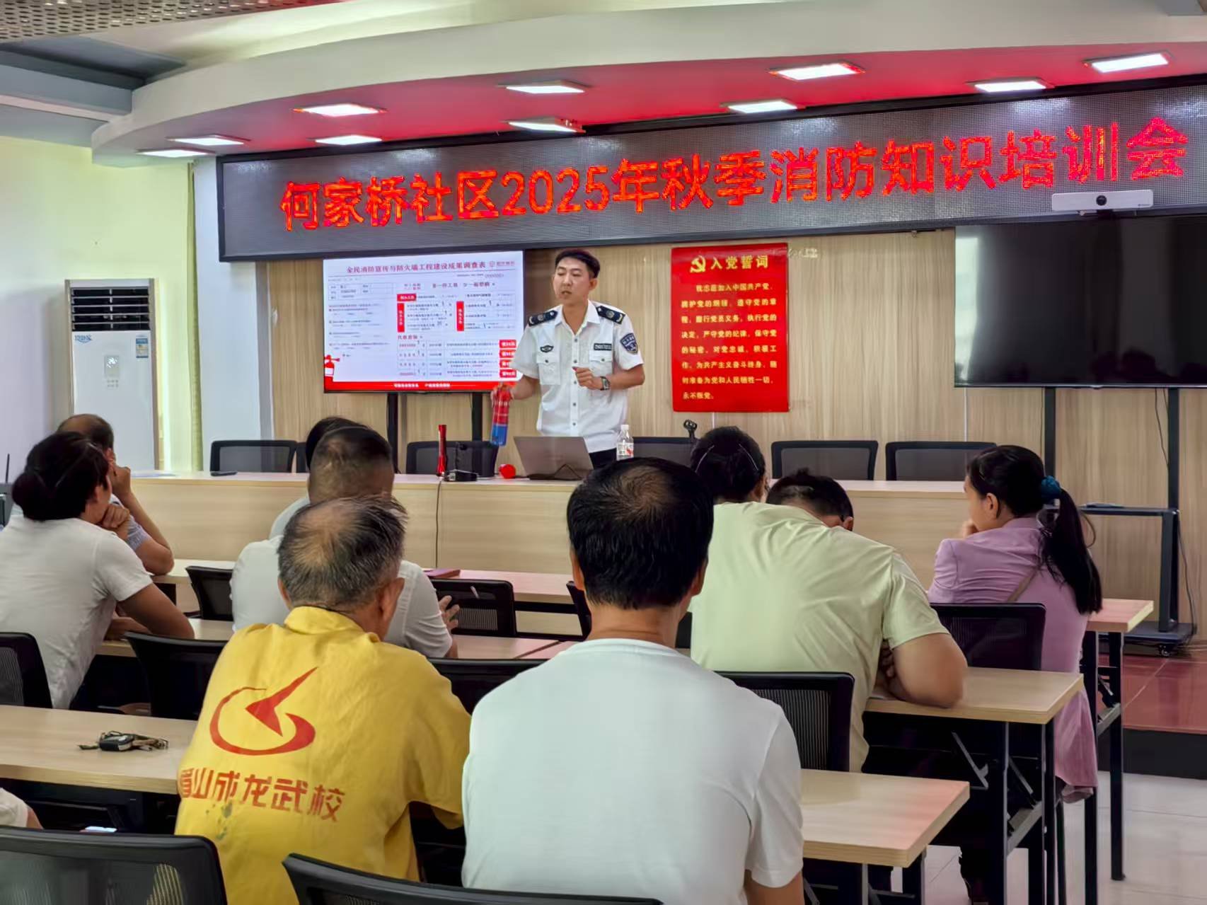 9月2日上午,射洪市太和街道何家桥社区组织辖区商户、物业单位及居民代表共50余人,在社区会议室开展了一场实用的秋季消防安全知识培训。活动旨在增强群众的火灾防范意识,提升自救互救能力,切实做好秋季消防安全工作。
