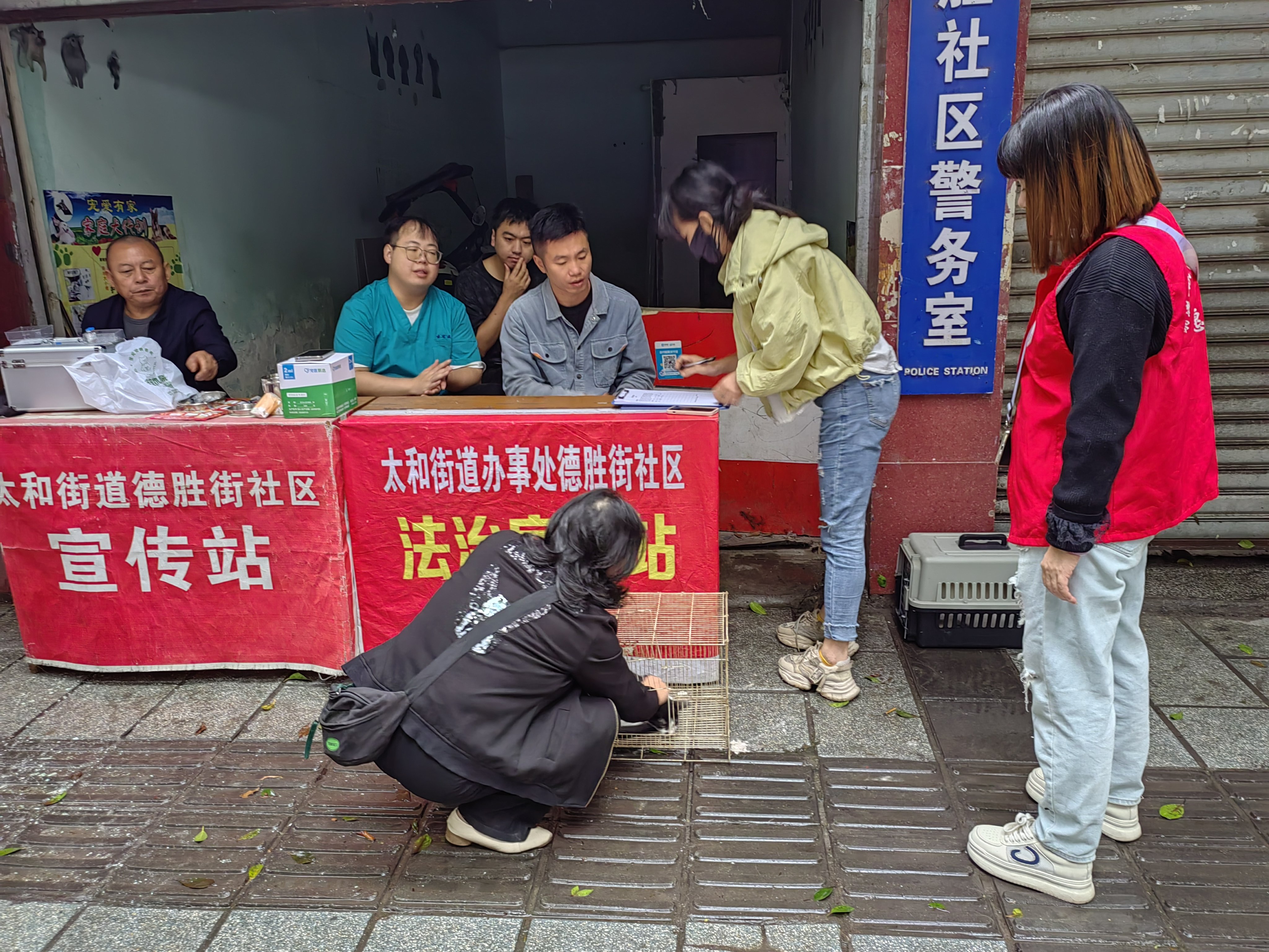 9月22日,射洪市太和街道德胜街社区联合第三方专业机构,在辖区内组织开展宠物免费疫苗接种服务活动,切实为养宠家庭提供便利,受到居民普遍欢迎。