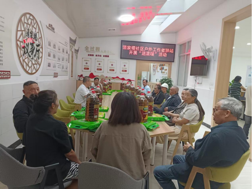 9月30日下午,射洪市平安街道清家堰社区户外工作者驿站紧扣中秋、国庆双节节点,组织开展节前“送温暖”活动,向辖区户外工作者致以节日问候。