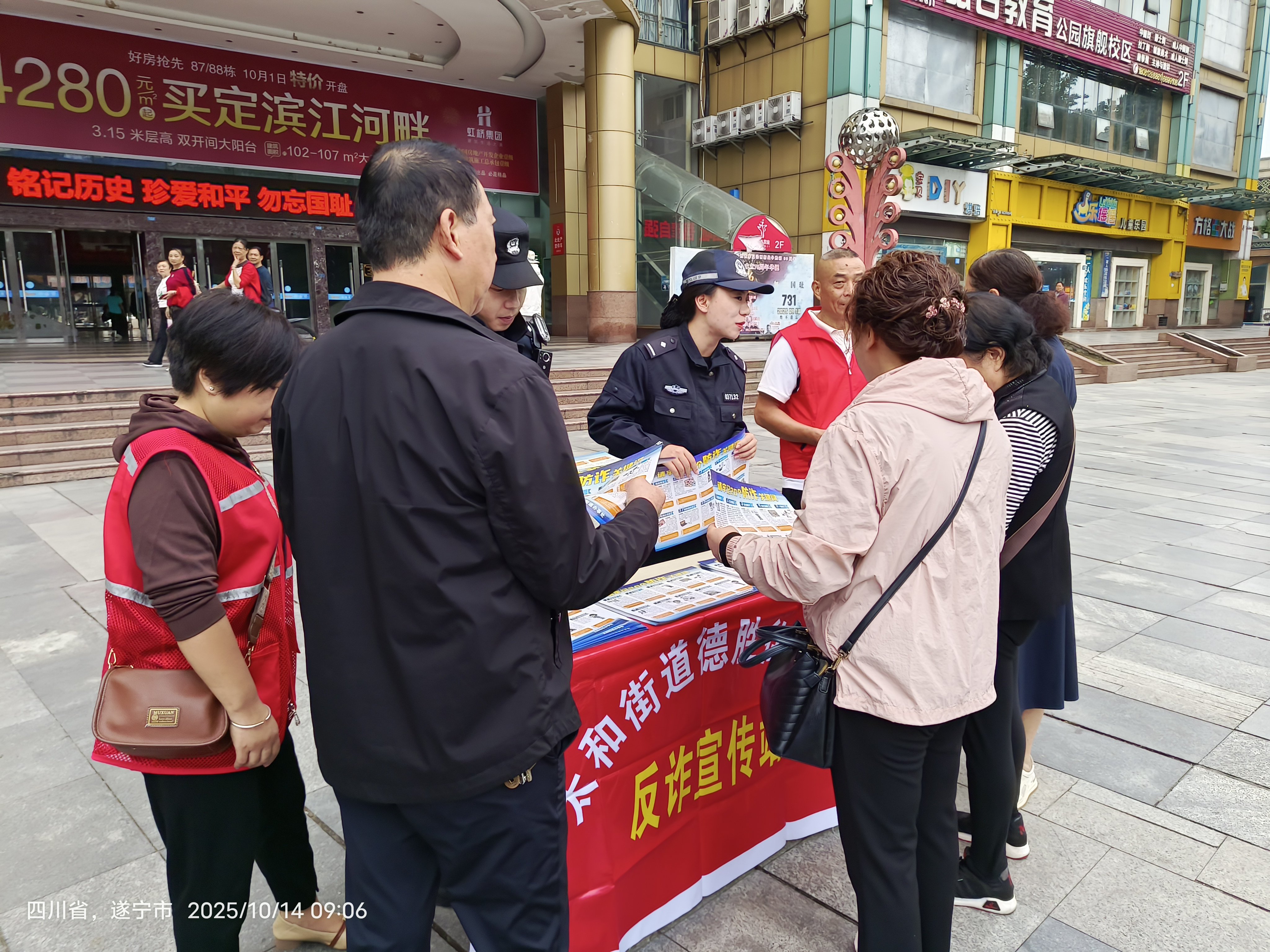 10月14日,射洪市太和街道德胜街社区联合太和派出所,在新世纪广场共同组织开展了一场面向居民的反诈防骗主题宣传活动,旨在切实提升社区居民的防范诈骗意识,保障人民群众的财产安全。
