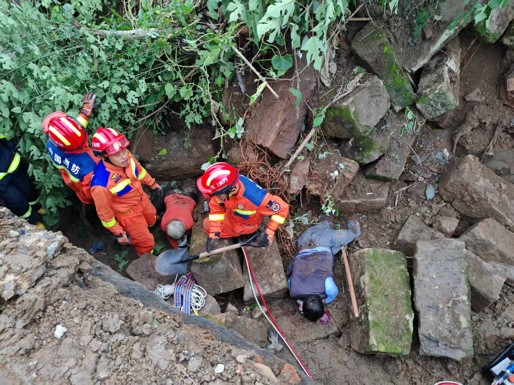 时间一分一秒过去,消防救援人员与“死神”赛跑,汗水浸透了他们的救援服。经过近两个小时的不懈努力,压在被困人员腿部的条石被成功顶升并固定,创造了足够的安全空间。消防员们小心地托住被困者,缓缓将其从重压下移出。两名被困群众终于成功脱困,由现场等候的医护人员立即进行初步检查和紧急处理后,迅速送往医院进行进一步治疗。