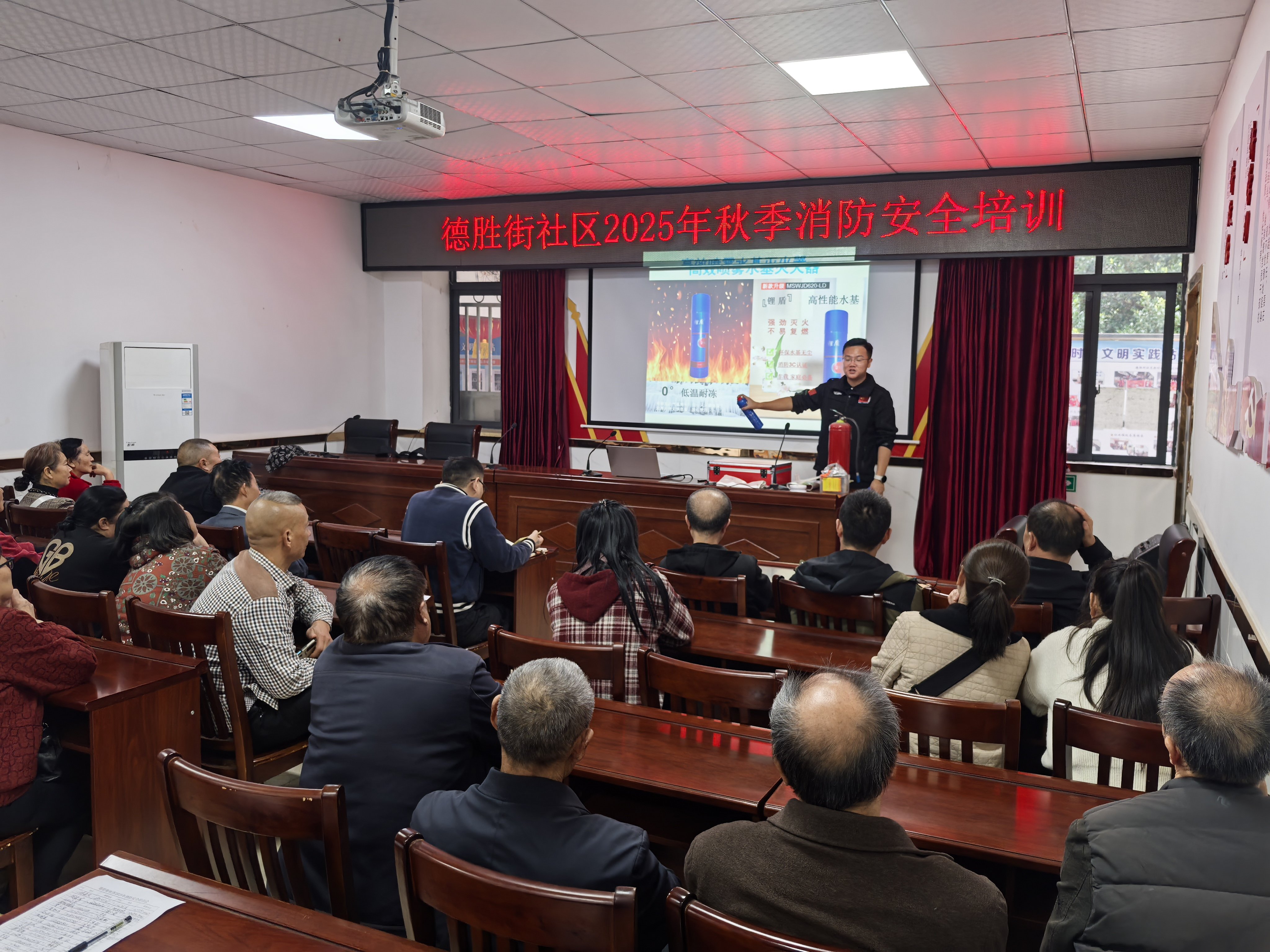 为进一步增强辖区居民及商户的消防安全意识,提升应对突发火情的自救互救能力,10月21日,射洪市太和街道德胜街社区组织辖区商户负责人、物业管理人员及居民代表共计50余人,开展了一场贴近实际、注重实效的秋季消防安全知识培训活动。