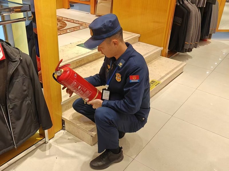 同时,防火班队员向商户发放消防安全宣传资料,并结合“九小场所”特点,现场讲解消防安全常识。队员们还演示了灭火器的正确使用方法,并邀请商户亲自操作体验,确保其掌握初起火灾的扑救技能。消防队员提醒商户,每日结束营业前应关闭电源、燃气源,严禁在室内为电动自行车充电,切实做到“安全自查、隐患自改”。