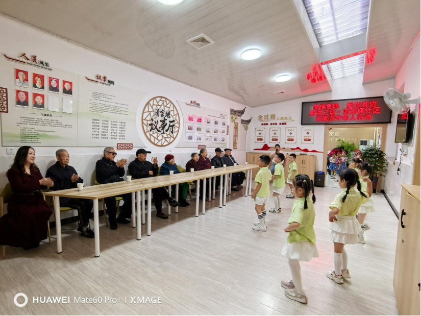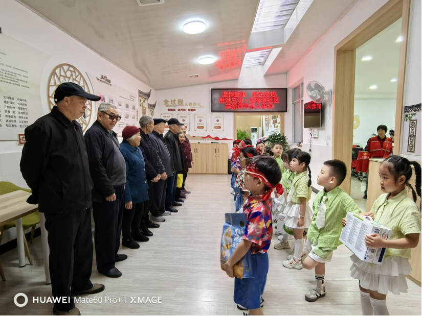 表演结束后,小朋友们在老师的带领下,小心翼翼地将牛奶、燕麦片等节日慰问品送到老人手中,还主动拉起老人们的手轻声问候。一句句“爷爷好”“奶奶节日快乐”“祝您们身体健康”,让老人们脸上洋溢着幸福的笑容。社区工作人员也借此机会与老人们亲切交谈,询问他们的生活和健康状况,传递社区的关怀。