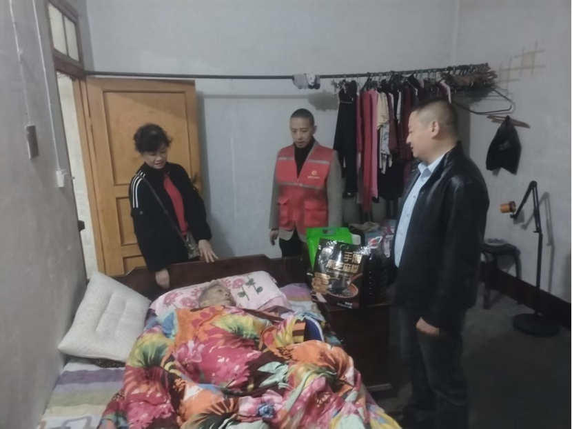 活动采用“集体慰问+入户走访”相结合的形式开展。在党群服务中心的集体慰问现场,社区工作人员与老人们亲切交谈,详细询问他们的身体状况和生活需求,亲手送上慰问品并致以节日祝福,现场氛围温馨融洽。针对部分行动不便的老年人,社区党委书记兰全与志愿者组成慰问小组,逐一登门走访,将米、油等生活物资送到老人家中,细心叮嘱老人注意秋冬保暖和日常安全,认真倾听老人诉求,让老人足不出户就能感受到社区大家庭的关爱。