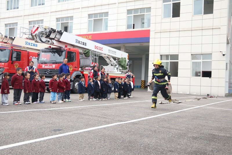 活动现场,孩子们在消防员的带领下,有序参观了消防车辆和各类随车器材装备。面对琳琅满目的消防装备,孩子们充满好奇,纷纷踊跃提问。讲解队员用浅显易懂的语言,介绍了各种器材的名称、功能及使用场景,并现场演示了部分装备的操作方法,让孩子们对消防工作有了直观认识。