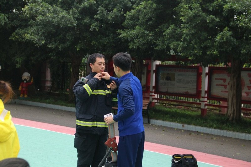 在互动体验环节,孩子们在消防员的专业保护下,饶有兴致地试穿了灭火防护服、戴上了消防头盔,亲身体验了一回“小小消防员”的感觉。厚重的战斗服与孩子们小巧的身形形成鲜明对比,但每个穿上消防服的孩子都不自觉地挺直腰板,仿佛瞬间肩负起了守护生命的神圣使命。此类互动,将消防安全教育融入生动有趣的体验中,不仅让孩子们近距离了解消防,更在他们心中播下了消防安全的种子。