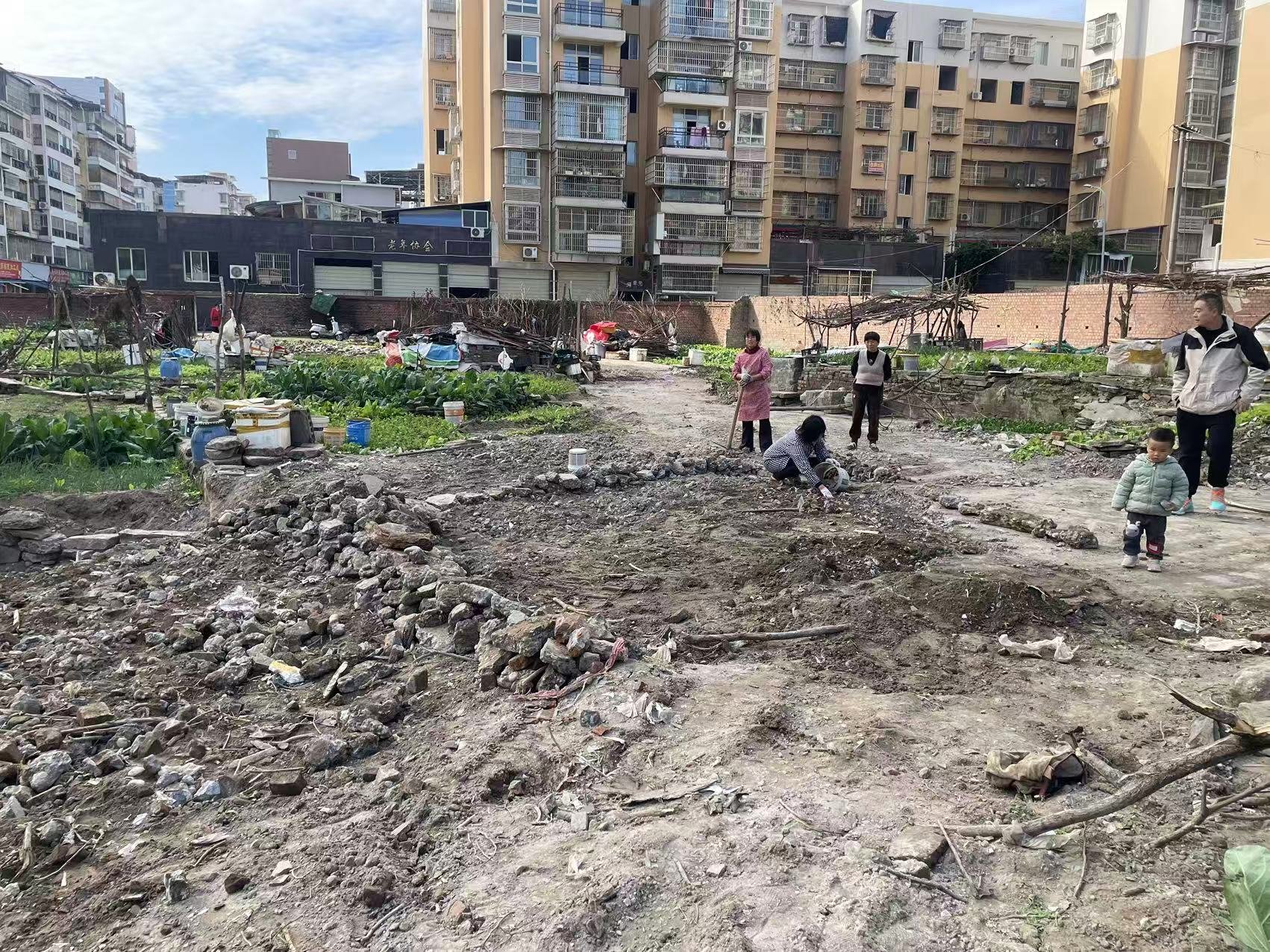 在清理过程中,社区工作人员与工人们相互配合,手持铁锹、扫帚等工具,将散落的砖块、废弃板材等建筑垃圾逐一装车清运。经过数小时的紧张作业,此前被建渣占据的场地变得整洁有序,卫生死角得到了有效治理。