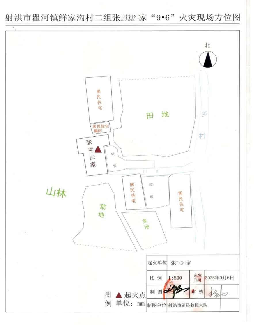 (2)现场勘验。根据现场勘验,现场未发有打火机、烟头、烟盒、可燃液体图痕、包装等残留物痕迹。