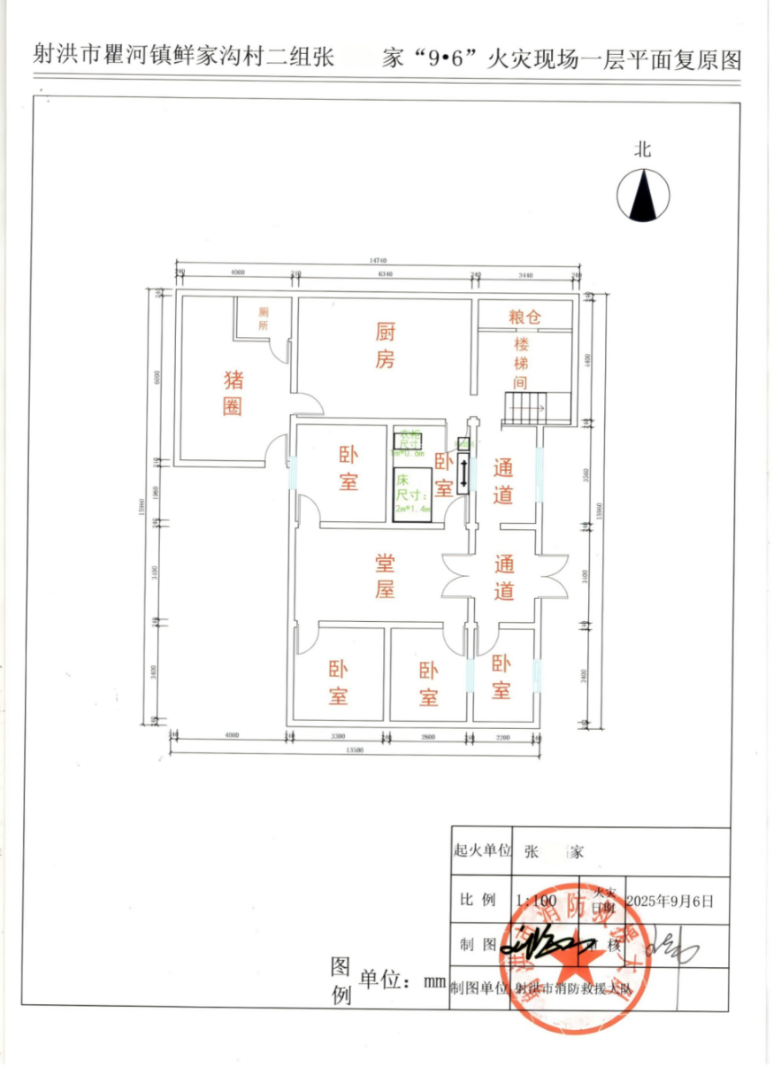 2025年9月6日12时00分许,射洪市瞿河镇鲜家沟村二组张x福家发生火灾,火灾造成1人死亡(姓名:张x福,男,年龄:80岁,身份证号码510922xxxxxxxxxxxx),过火面积约70平方米,经统计该起火灾共造成直接经济损失64400元。