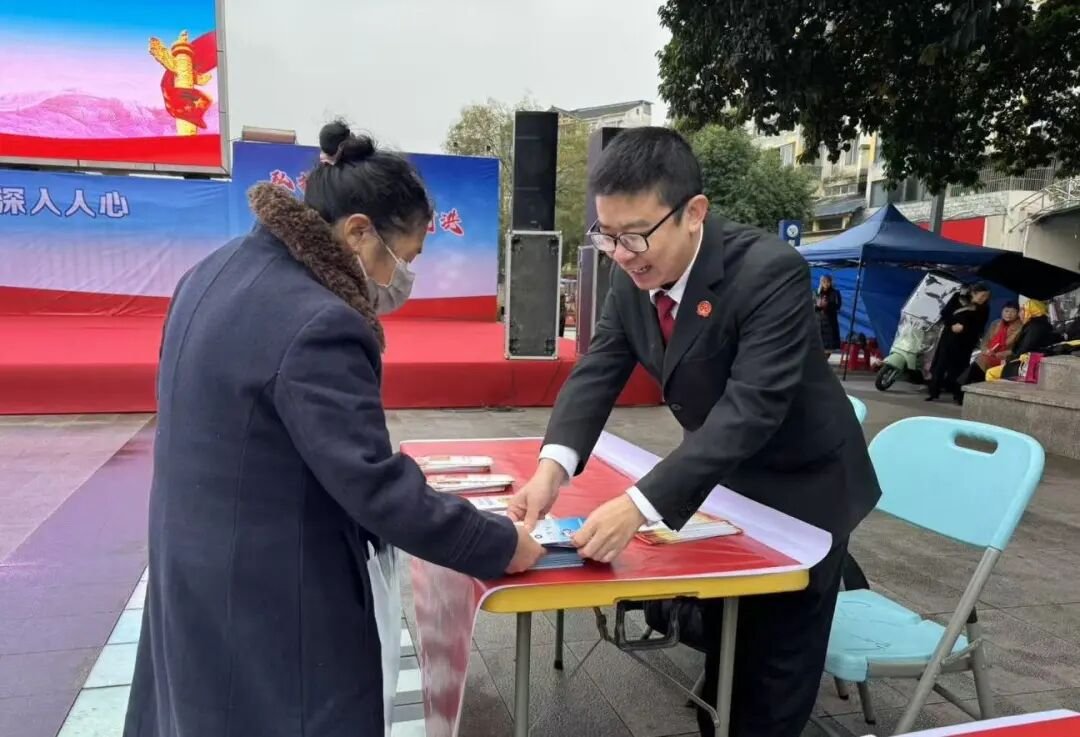 干警们在活动现场设立法治宣传点,积极向过往群众发放宪法读本、法治宣传册等资料,围绕群众关心的法律问题耐心解答咨询。