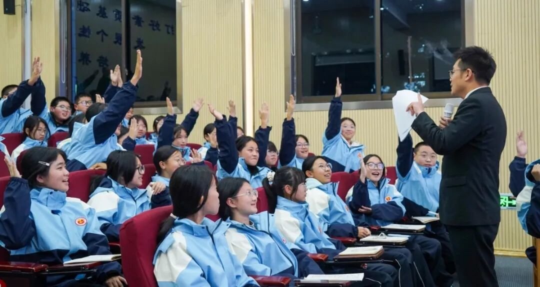 法官围绕宪法,以人生旅程为轴,生动阐释了宪法如何陪伴和保障公民的一生:“从出生获得国籍成为公民,到入学接受教育的权利与义务;从成年后享有权利、履行义务,到工作、成家乃至退休……宪法始终与我们息息相关。”通过真实案例剖析校园欺凌、性侵害的多种形式,传递自我保护意识。面对网络诈骗常见陷阱,干警送上“防诈六问”实用锦囊,引导同学们在“心动”前先“灵魂拷问”。