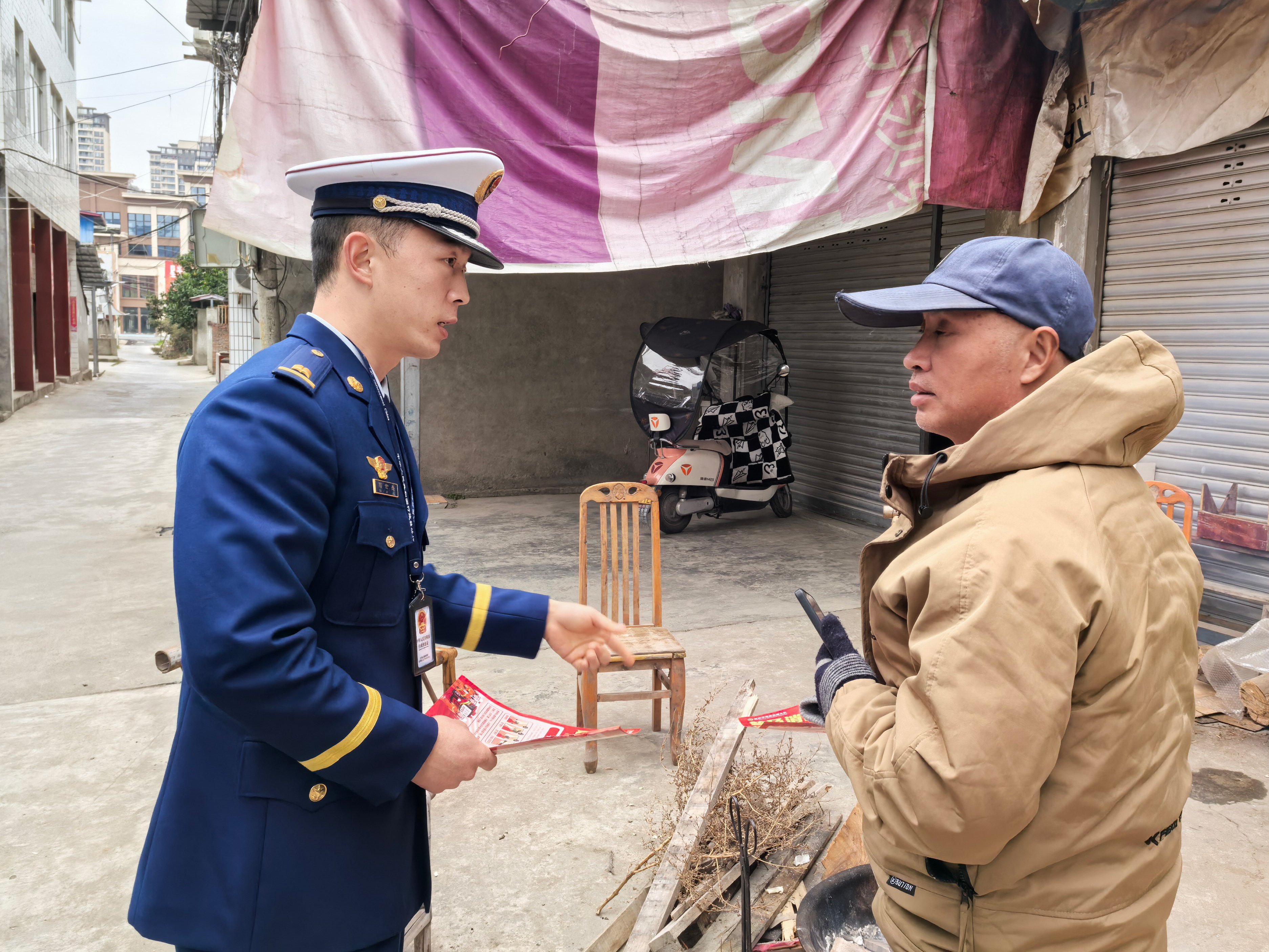 活动中,大队宣传员结合冬春季节农村用火用电增多、火灾易发多发的特点,走村入户进行面对面宣讲。向村民发放冬春防火宣传资料,现场讲解家庭防火注意事项、取暖设备安全使用、电动车充电规范、燃气使用安全以及初期火灾扑救和疏散逃生等实用知识。宣传员还重点提醒村民注意夜间取暖安全、不在房前屋后堆放草垛杂物、不私拉乱接电线、祭祀烧纸远离可燃物等,并现场解答村民关于消防安全的相关疑问。村民们积极响应,表示将更加注意日常火源管理,及时消除隐患。