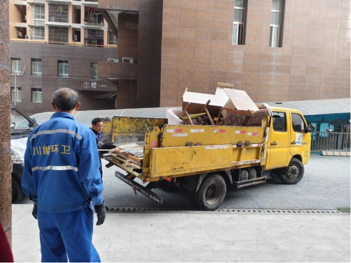 行动重点针对高层走廊、多层楼梯间等公共区域。工作人员与环卫工人协作,清运了长期堆放的旧家具、废旧家电等杂物,解决了占用和堵塞“生命通道”的问题。