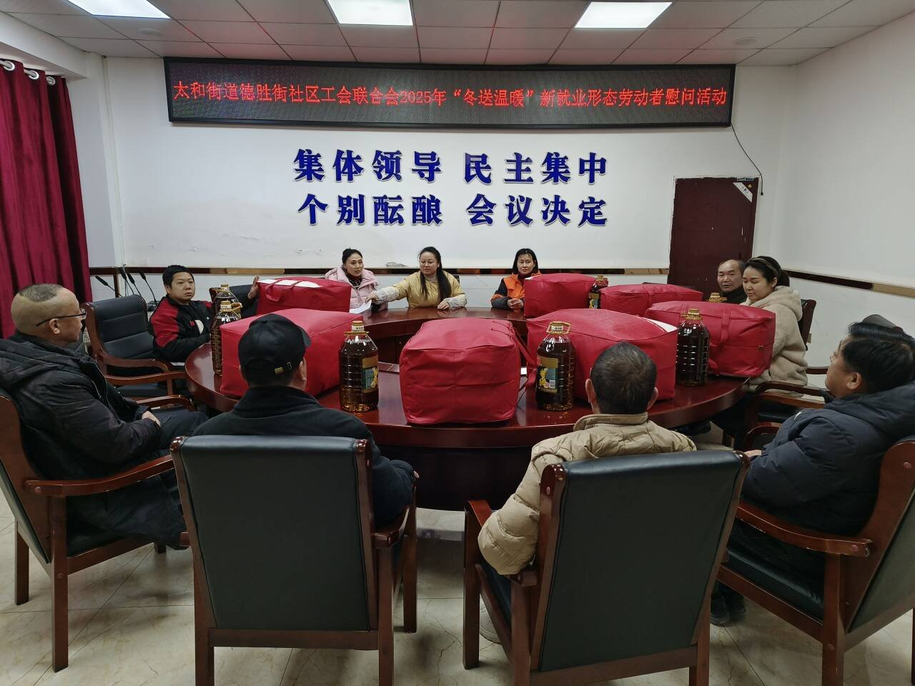 近日,射洪市太和街道德胜街社区工会联合会组织开展“冬送温暖”慰问活动,为在寒冷天气中坚守岗位的新就业形态劳动者送去冬日的关怀与祝福。