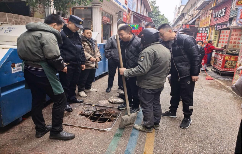 社区网格员周柳第一时间赶赴现场,通过逐一走访周边商铺并排查商户内部管道,初步判断问题根源在于市政主管网堵塞。社区“两委”获悉后立即启动联动机制,会同街道办事处、综合执法局、住建局等职能部门进行现场联合勘查。经多部门共同研判,最终确定由城投公司牵头实施管道更换维修方案。
