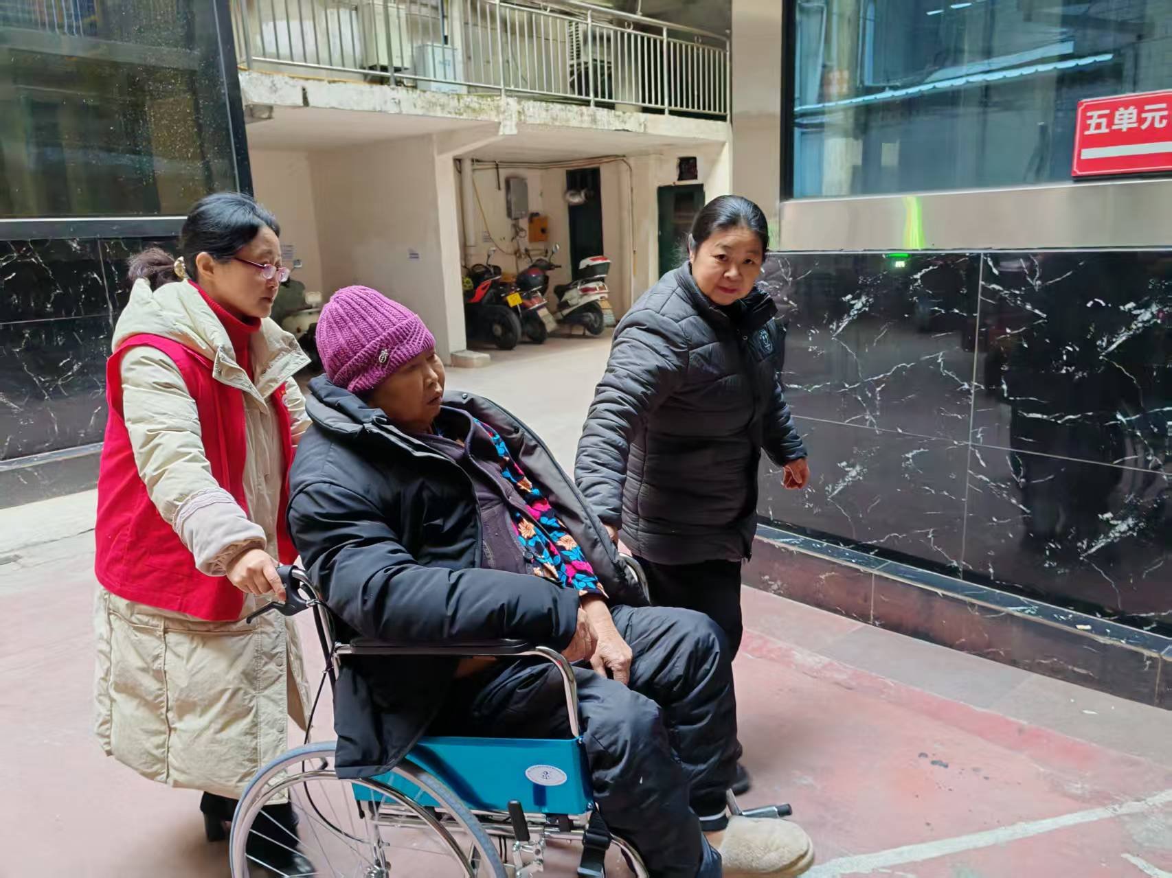 当天,社区工作人员在巡查时注意到路边有两位老人长时间停留,神色焦虑。其中一位老人因身患重病,日常需依靠轮椅出行,而其老伴此时面露难色,表示自己突然身体不适,无力继续推行轮椅,回家之路受阻。