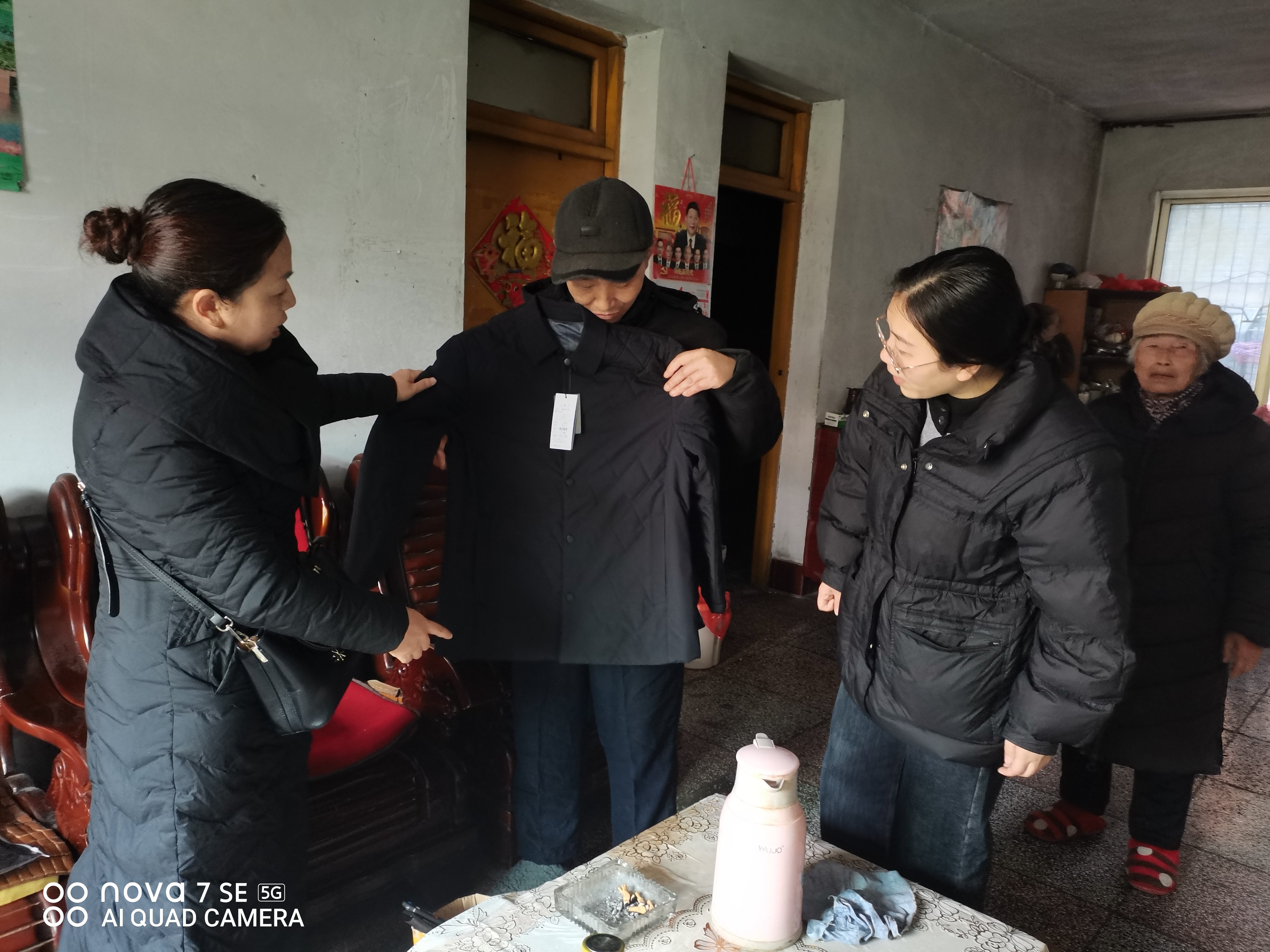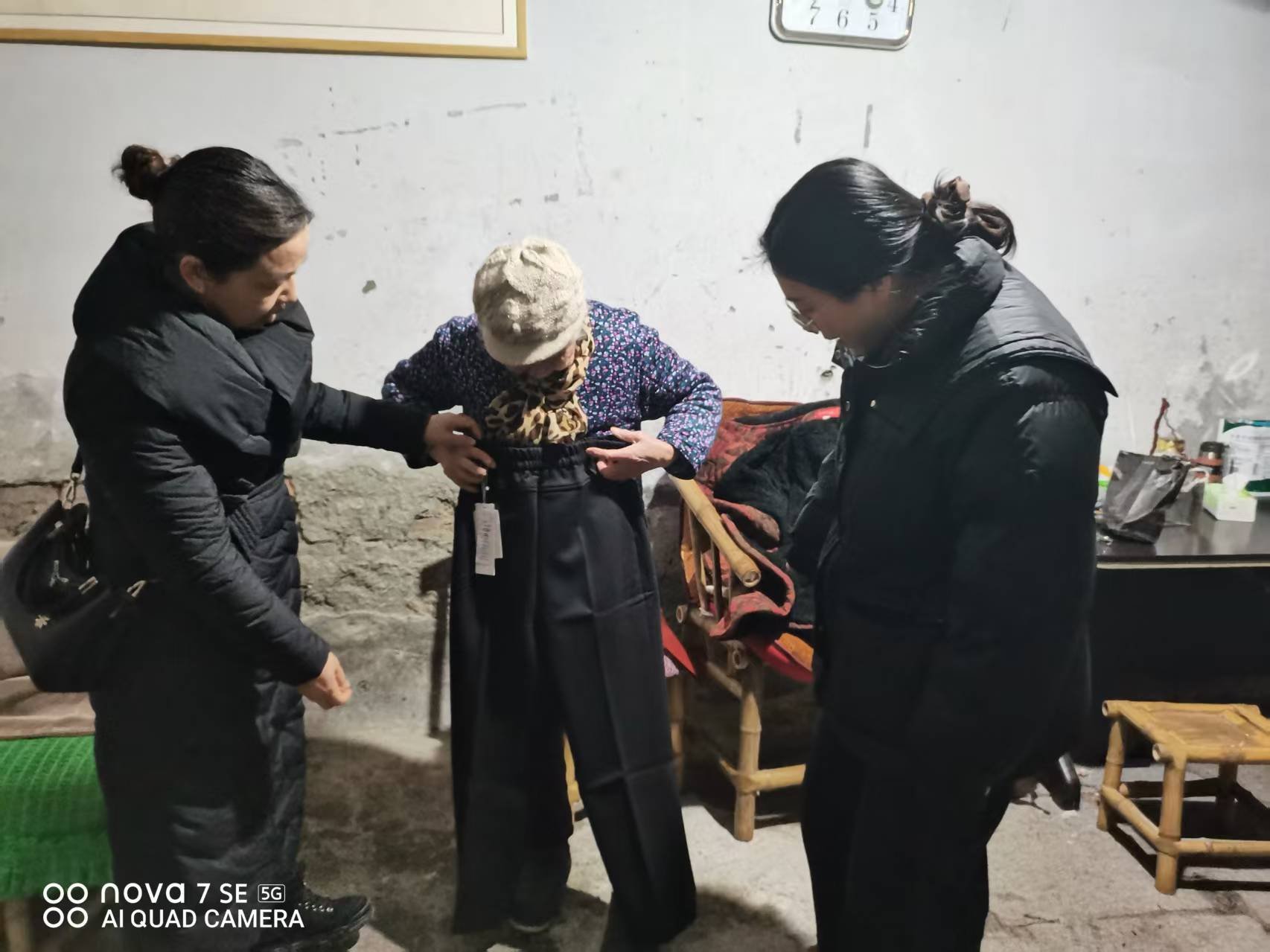 随着强冷空气的到来,气温持续走低。水浒宫社区提前部署,组织工作人员及志愿者对辖区内的特殊困难群体进行了摸底排查,详细了解他们的过冬需求和实际困难。行动当天,社区工作人员带着精心准备的棉衣、棉裤、方便面、牛奶等基本生活物资,逐一走访慰问困难家庭。