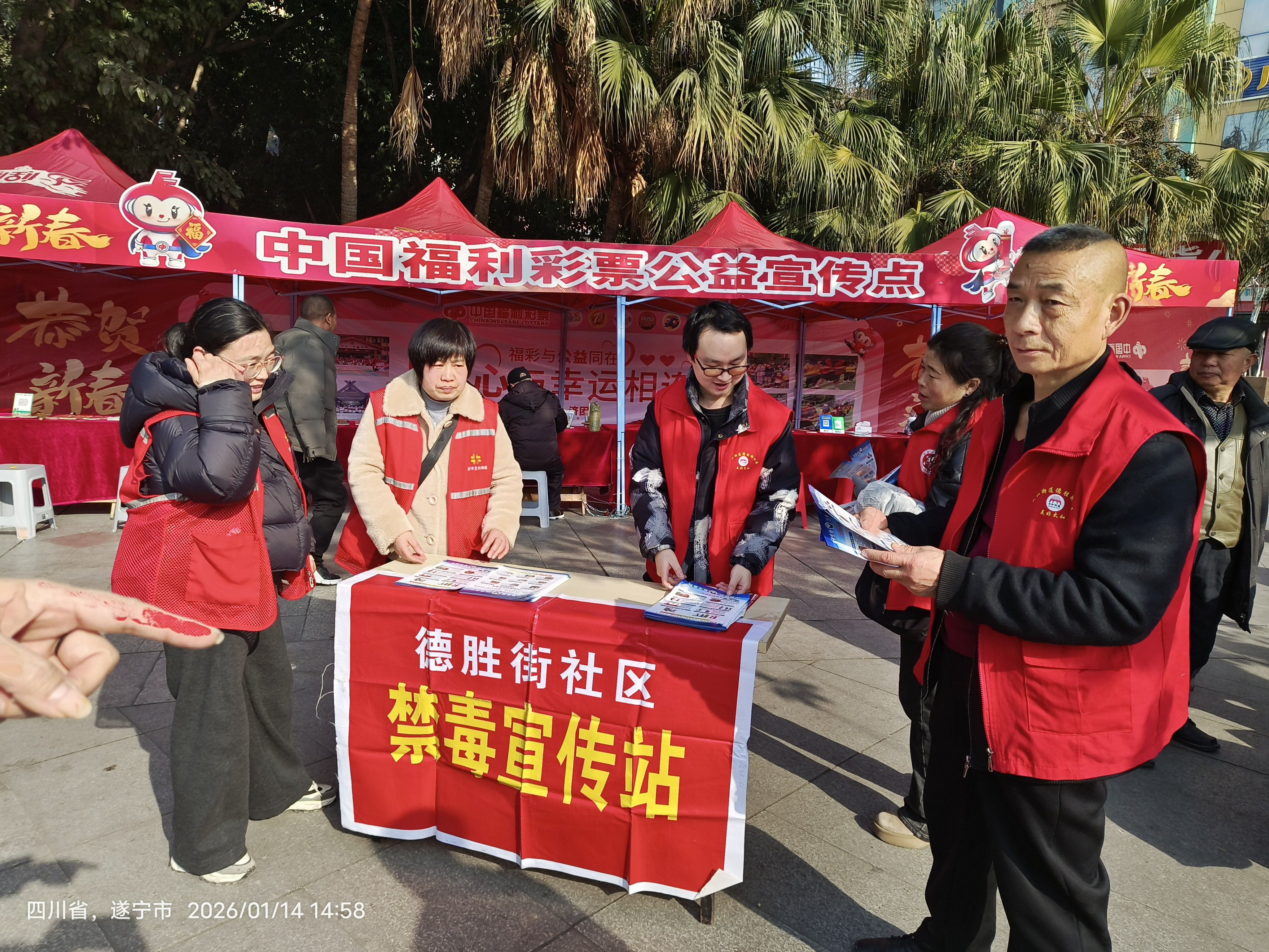 近日,射洪市太和街道德胜街社区在新世纪广场人流密集处设立了禁毒宣传站,面向广大居民群众开展了一场贴近生活的禁毒知识宣传。