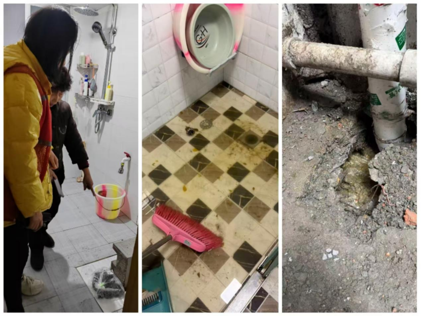 “卫生间全是粪水,还渗漏到了楼下,真是太糟心了!”近日,射洪市太和街道三元宫社区豫缘街6号小区居民涂女士的一通求助电话,牵动了社区工作人员的心。家中厕所下水管道突发堵塞并渗漏,不仅严重影响自身生活,更给二楼住户带来困扰,紧急情况让居民手足无措。