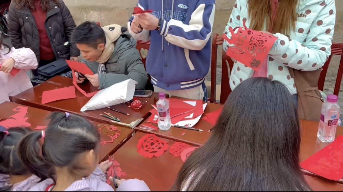 演出结束后,社区开展“墨香迎新春 剪纸贺丰年”新春送福活动。几位书法爱好者现场挥毫,为居民书写春联和“福”字;剪纸艺人手把手教大家剪窗花,红纸翻飞间,一幅幅寓意吉祥的作品传递着新春祝福。