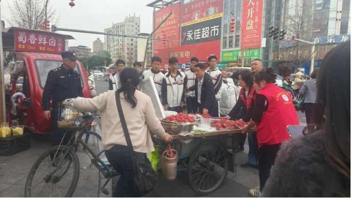 当日下午四时,金宸街与太和大道交叉口人头攒动,来自何家桥社区的工作人员、城管执法中队队员以及射洪中学高中部学生准时集结。在何家桥社区党委书记曾泽均的带领下,大家兵分三路,迅速投入到志愿服务活动之中。