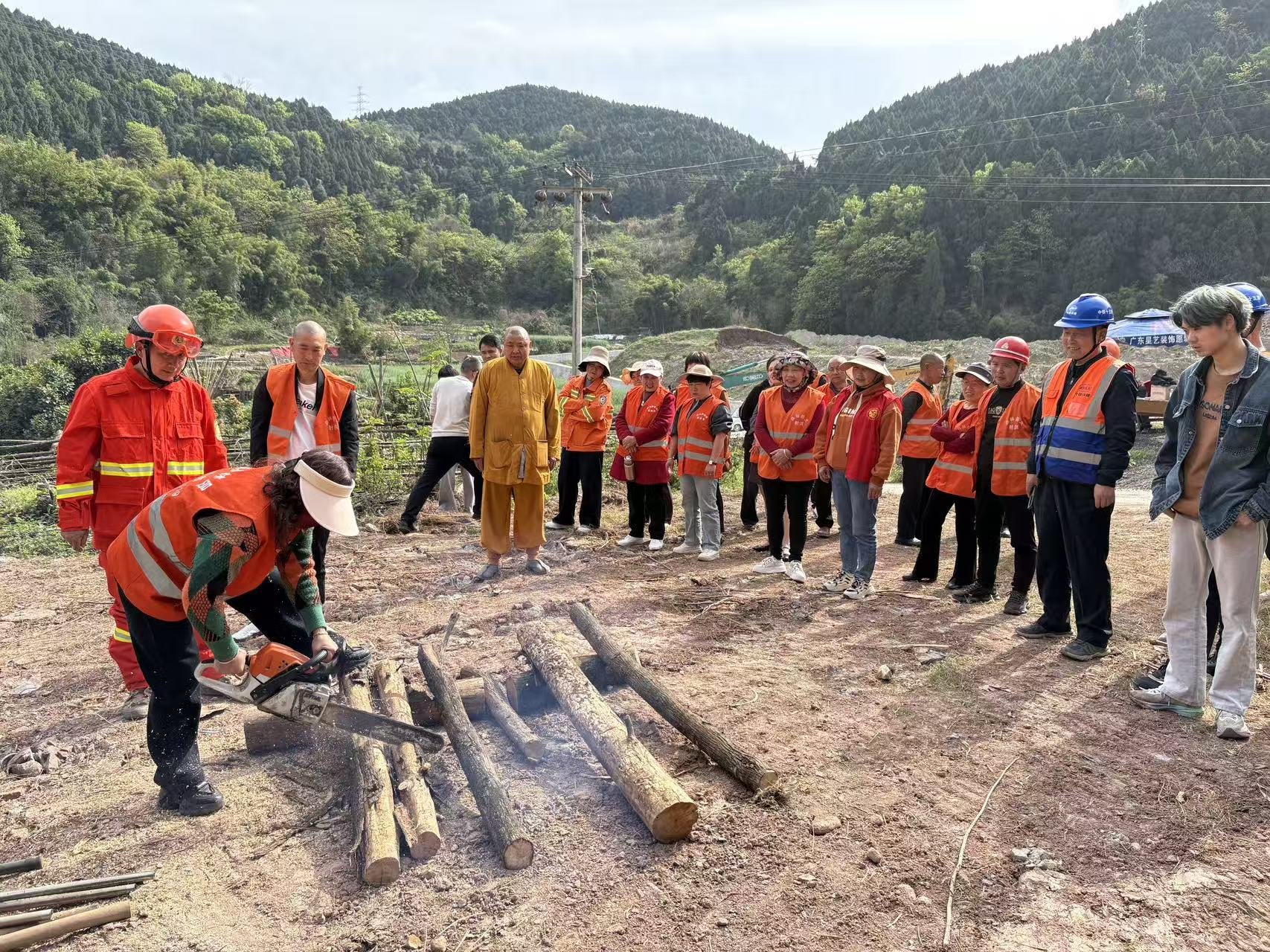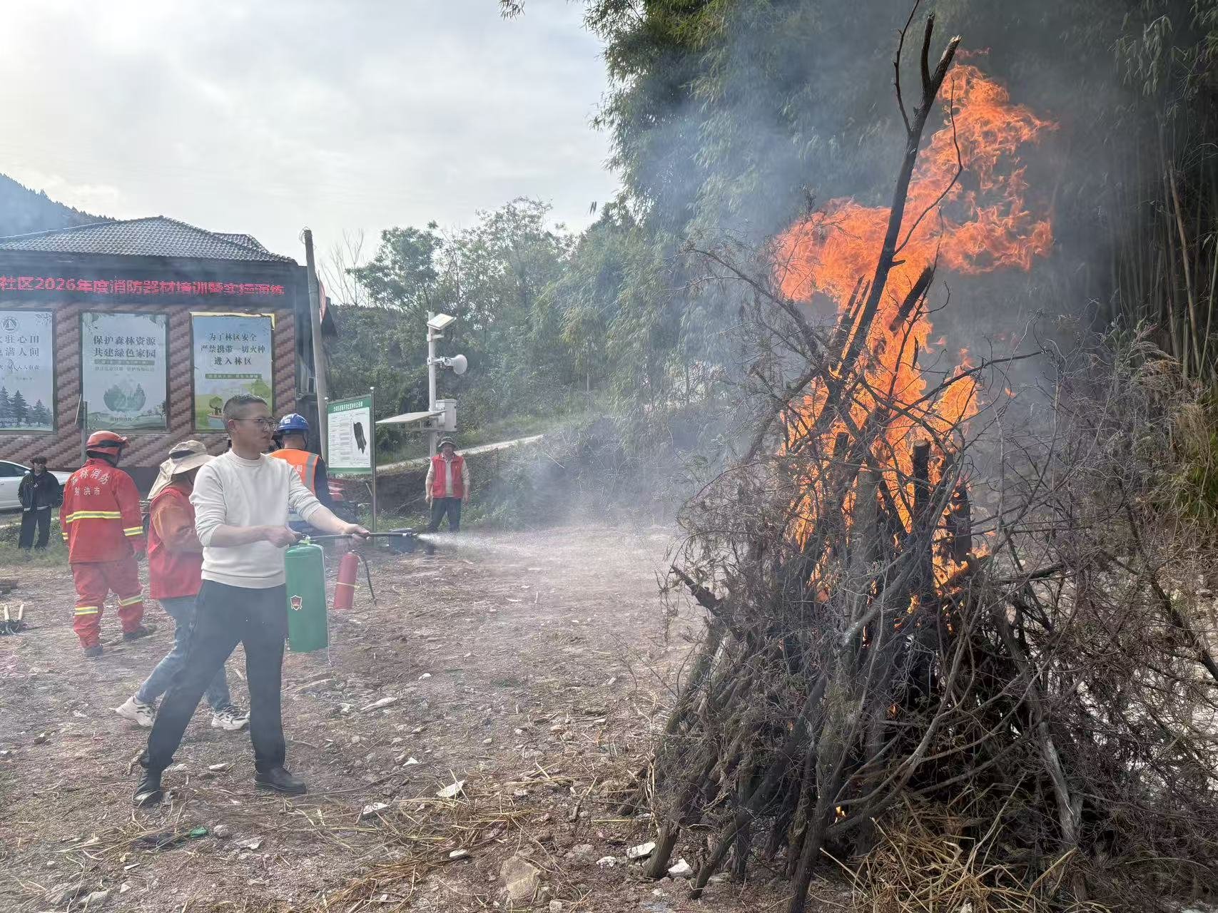 培训结束后,社区党支部书记谭山带领参训人员来到辖区指定区域,开展消防实操演练。演练开始前,护林员首先讲解了风力灭火机、灭火器、油锯等装备的操作方法和注意事项,并对关键步骤进行现场示范。